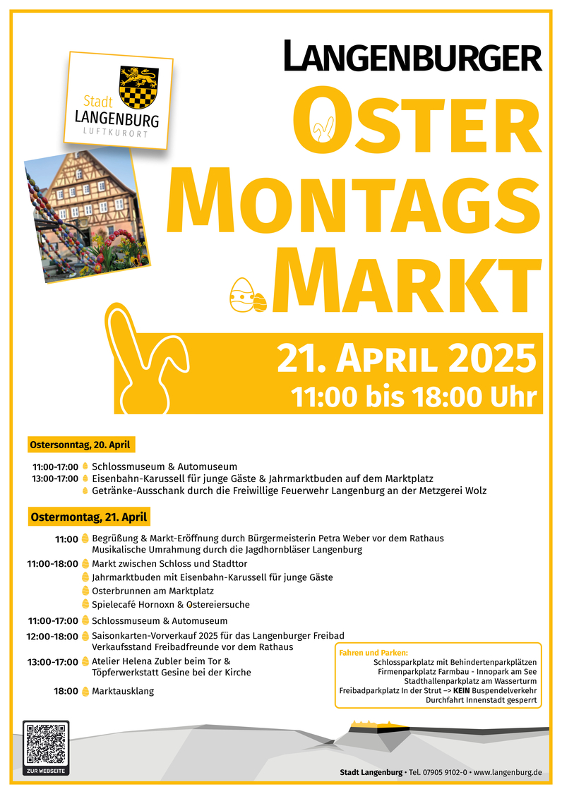 In diesem Jahr findet anlässlich der 800-Jahr-Feier Langenburgs paralell zum Ostermontagsmarkt eine Leistungsschau der Langenburger Gewerbetreibenden und Institutionen statt.